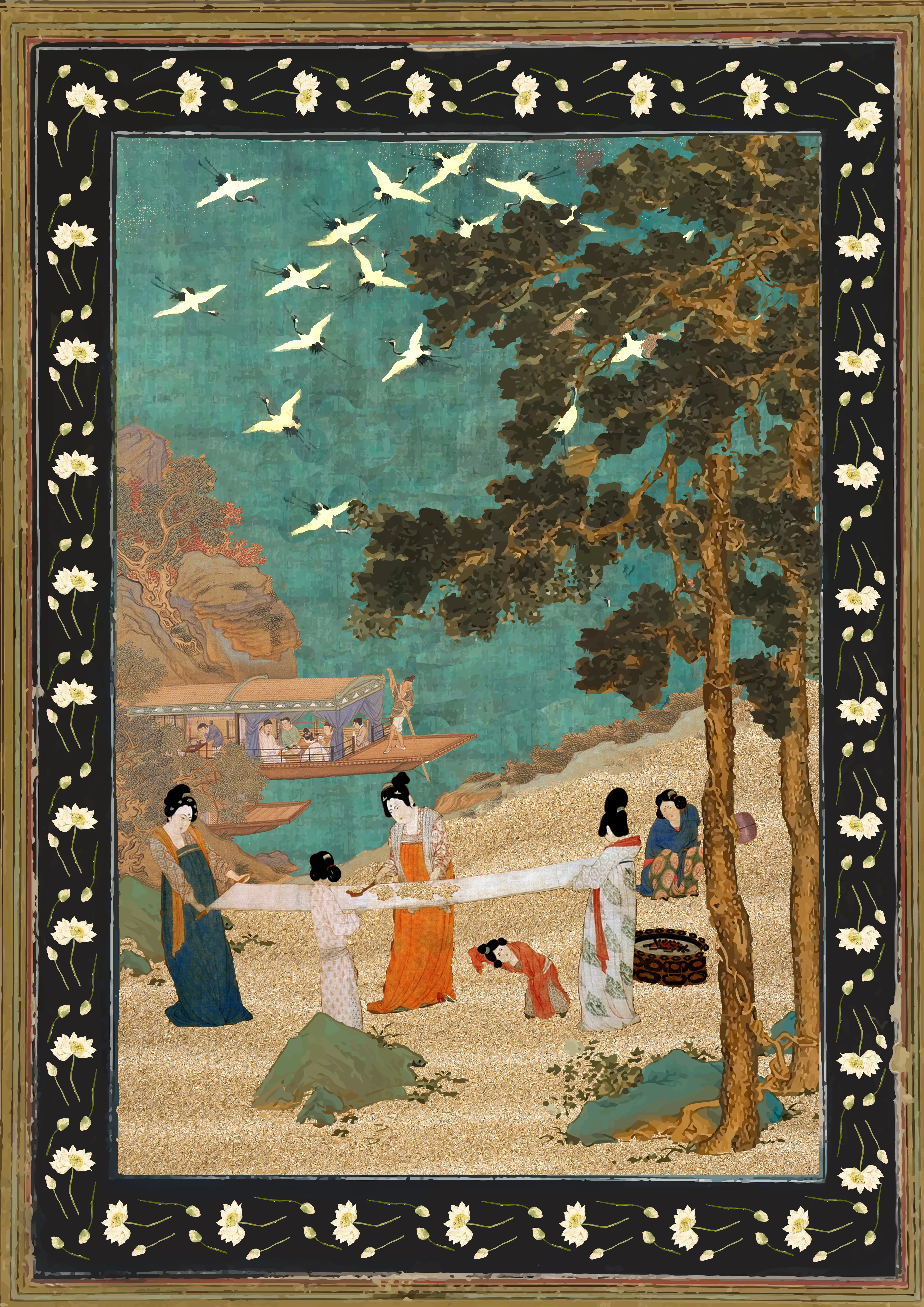 An interactive quilt stitched by intergenerational South Asian participants, each panel revealing the word ‘periods’ in their language with recorded stories activated by touch.